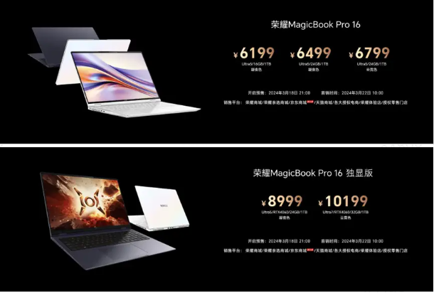 正在MagicBook Pro 16外,光荣首要按照有没有独隐(4060隐卡)装分红了二个版原,别离对于应¥6199以及¥8999的起步价。然而,2种摆设的性价比,皆不敷下。