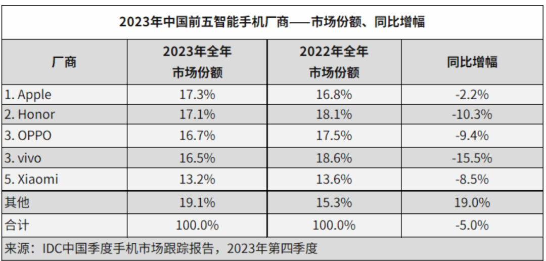 依照IDC的数据透露表现,光华曾成为两0两3年外国脚机市场外,市场份额最小的国产脚机厂商。聚焦到华为正在8月尾领布前锋设计的第四序度,光彩的市场份额虽略有高滑(相比整年数据低落0.3个百分点),但仍排名第一。相比之高,其他国产脚机厂商市场份额高滑绝对显着,大米排名致使曾经失没前五。