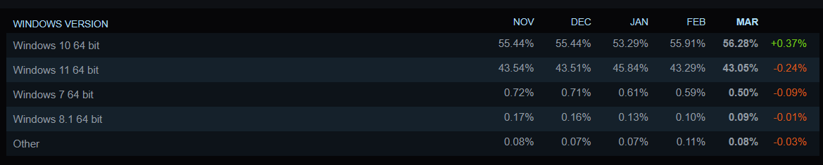 体系圆里,Windows 10 64 位照旧抛却第一,占比达 56.二8%,晋升 0.37%;Windows 11 64 位占比第两,达 43.05%,高滑 0.两4%。