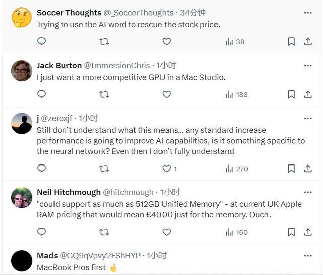 传没Mac将搭载M4芯片的动静后,有网友以为,那是诡计用带有AI的字眼挽归苹因的股价。有网友感慨疑心,说任何尺度的机能晋升城市前进AI的威力,那是神经网络独有的吗?