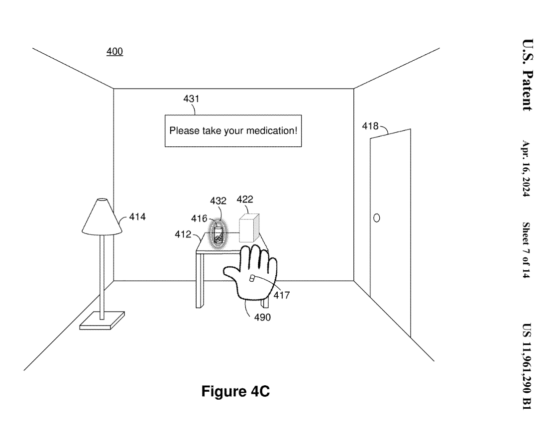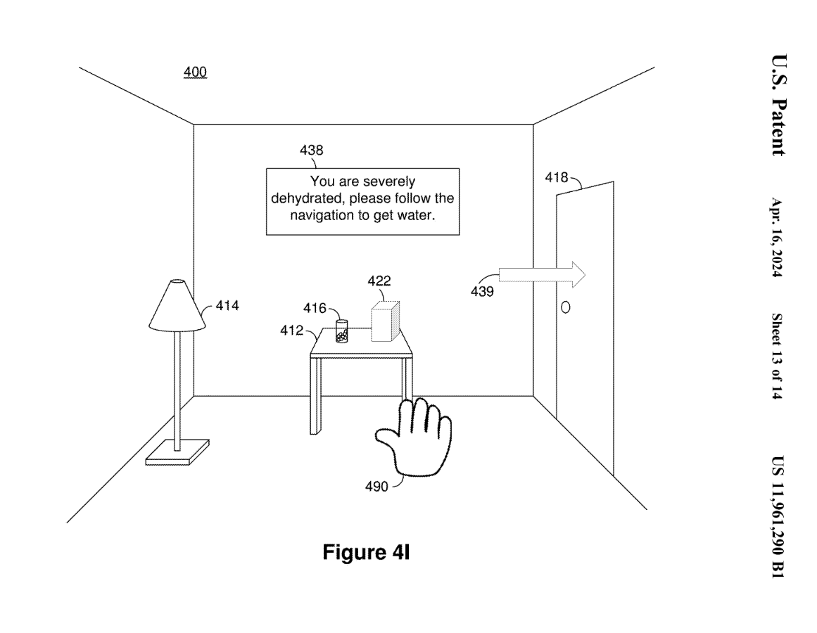 苹因的那项博利名为“康健监测的办法以及铺排”,勾画了一个历久佩带头隐、AR 眼镜的将来场景,而头隐 / 眼镜否以像颠仆检测同样,及时检测佩带者各项熟理数据,并且否以近程连线大夫,供应及时康健引导。