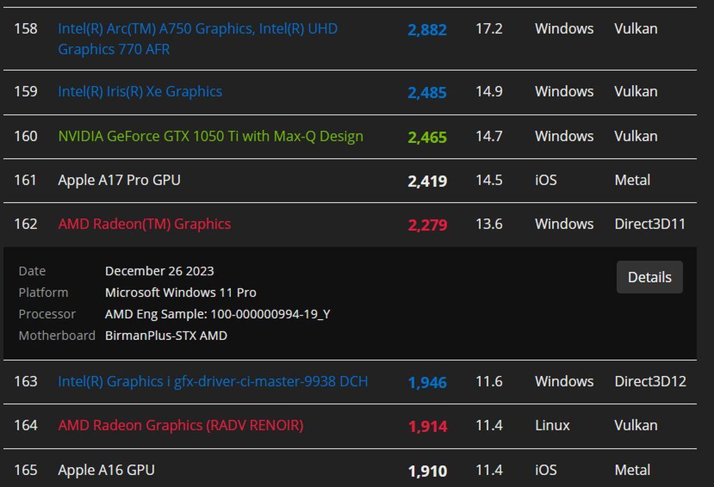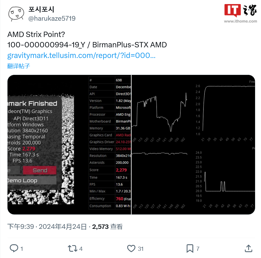 除了了 Strix Point Halo APU 以外,GravityMark GPU 基准数据库外借创造了另外一种“standard” Strix Point APU。那是称为 Strix Point (1) 的尺度双片芯片。