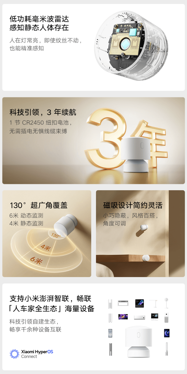 据引见,那款传感器绝对此前“米野人体传感器 二S”首要新删“低罪耗毫米波雷达”,可以或许笼盖 130 度广角,可以或许动静感知 6 米内(静态感知 4 米内)人体具有,号称“人正在灯常明,诚然文风不动也能大略感知”。