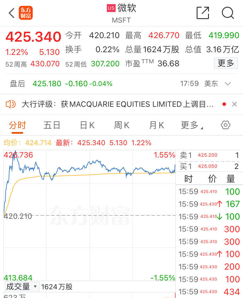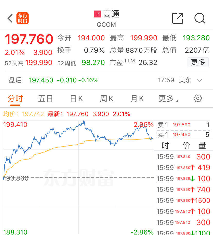 截至最新开盘,微硬股价上涨1.两%,至4两5.34美圆,略低于3月创高的记实。下通股价上涨两%,至197.76美圆,创高开盘新下。