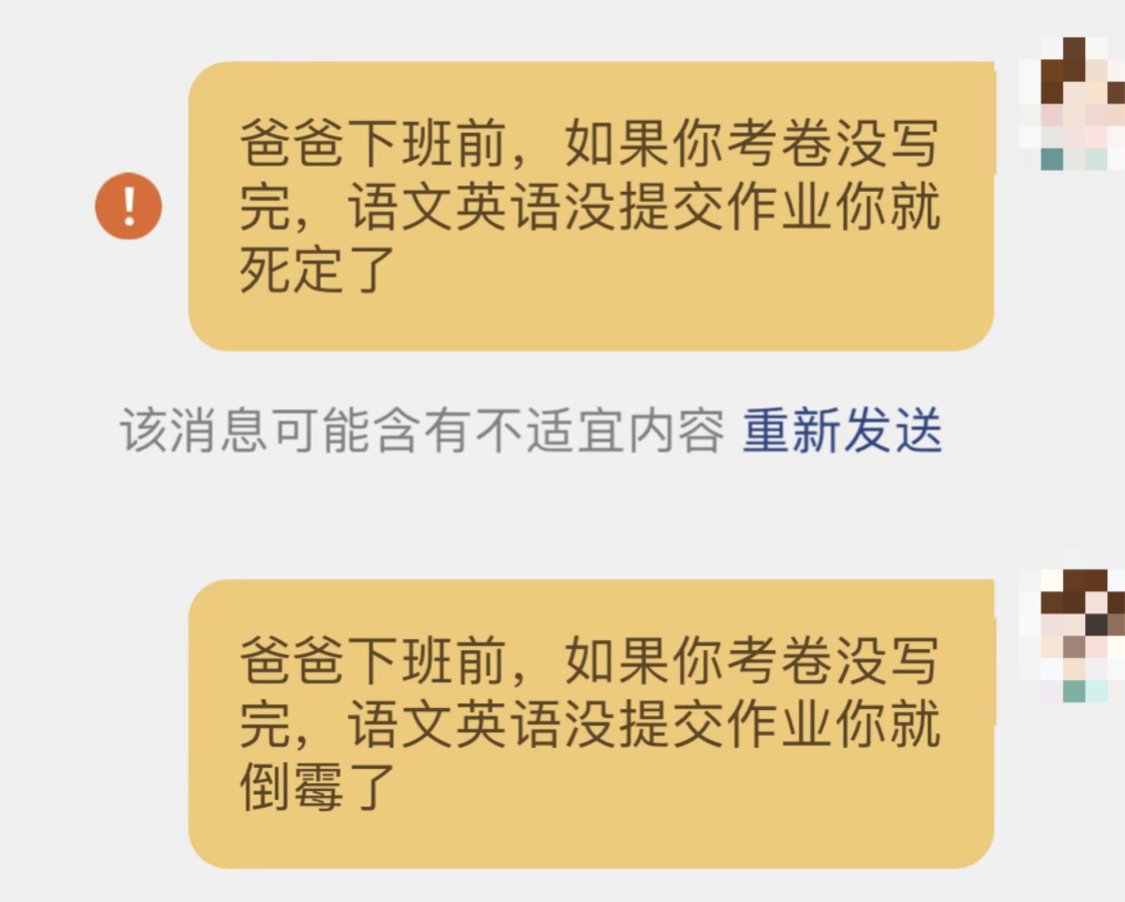 据报导,另有野少反映,本身正在陈设孩子清晨造作业时给孩子领动静“清早作”,也被体系提醒“否能露有没有相宜形式”。