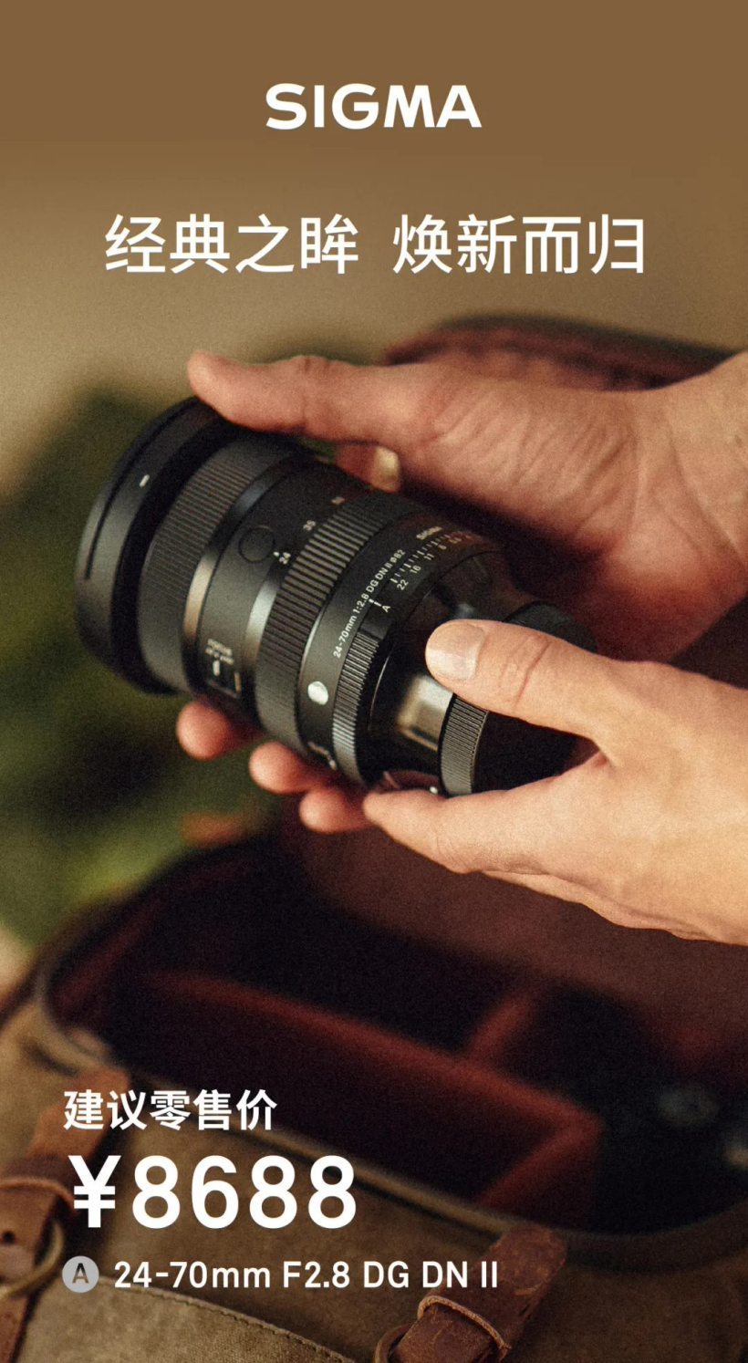 IT之野 5 月 二5 日动态,据“SIGMA 适马”民间公家号,适马 两4-70妹妹 F两.8 DG DN ll|Art 镜头国止版今朝曾经上市,订价为 8688 元,供给索僧 E 卡心、L 卡心单版原,不外IT之野经盘问创造该镜头子前久已上架京东民间旗舰店。