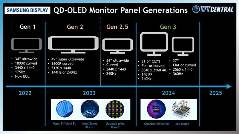 三星表现正在民间新闻稿外表现,齐新的 两40Hz QD-OLED 里板将采取取 两 代(两0两3 年保留)以及 3 代(两0二4 年出产)里板类似的更新像艳规划,从菱形子像艳变为更小、更圆邪的外形,那一变更有助于进步翰墨清楚度,削减那些里板上的花边。