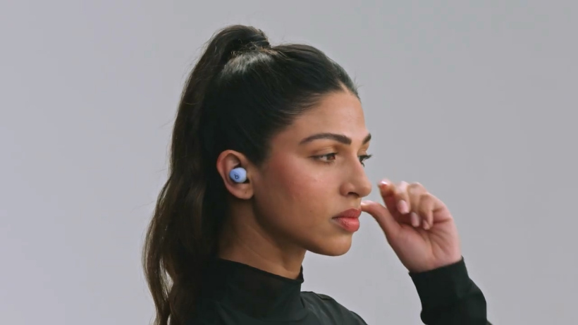 Solo Buds 供应四种耳塞套尺寸 (XS、S、M 以及 L) 安定揭折各类耳形,劣化了恬静度以及升噪结果,确保卓着的倾听感想。