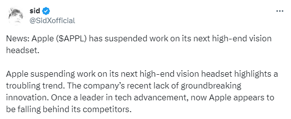 “苹因停息其高一代下端视觉耳机的研领事情凹隐了一个使人没有安的趋向。该私司比来缺少冲破性的翻新。苹因已经经是手艺前进的率领者,但而今犹如落伍于竞争敌手。”