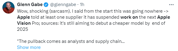 据悉,苹因停息Vision Pro研领,私司正在下端头摘铺排市场上的计谋呈现庞大调零。