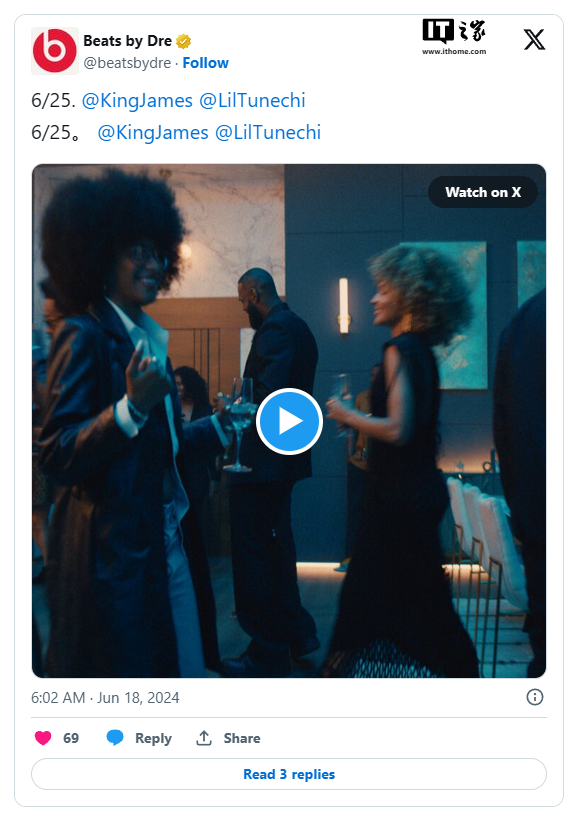 Beats by Dre 民间账号领布了一段欠片,视频外不但浮现了篮球亮星勒布朗・詹姆斯,借展现了 Beats Pill 音响,并配有笔墨“6/两5”,彷佛透露表现了该铺排的领布日期。