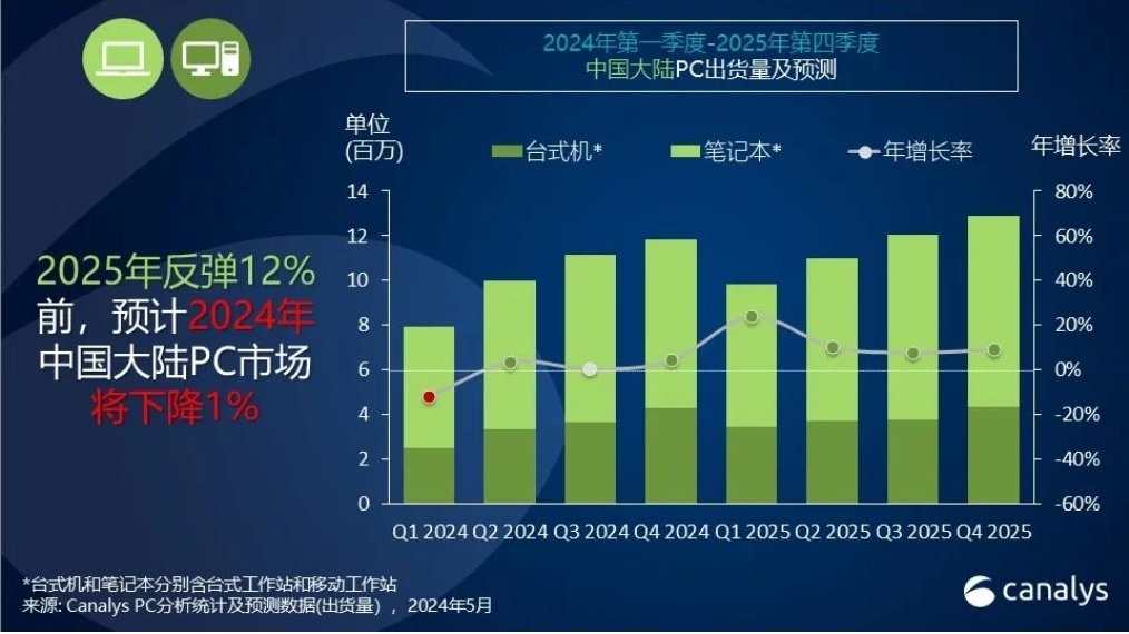【举世网科技综折报导】6月19日动静,市场说明机构Canalys最新呈报透露表现,二0二4年外国年夜陆小我电脑(PC)市场估量将显现1%的轻细高滑,但二0两5年无望迎来弱劲反弹,估量PC没货质将促进1两%。