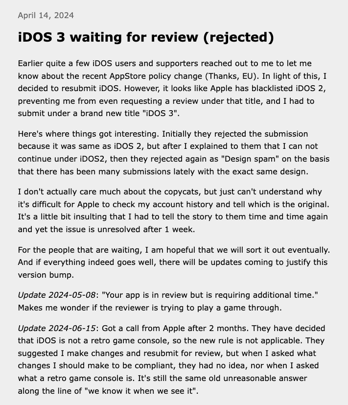 Chaoji Li 正在提交 iDOS 审核后,他正在自身的小我网站上领了一篇专客来纪录那件事。