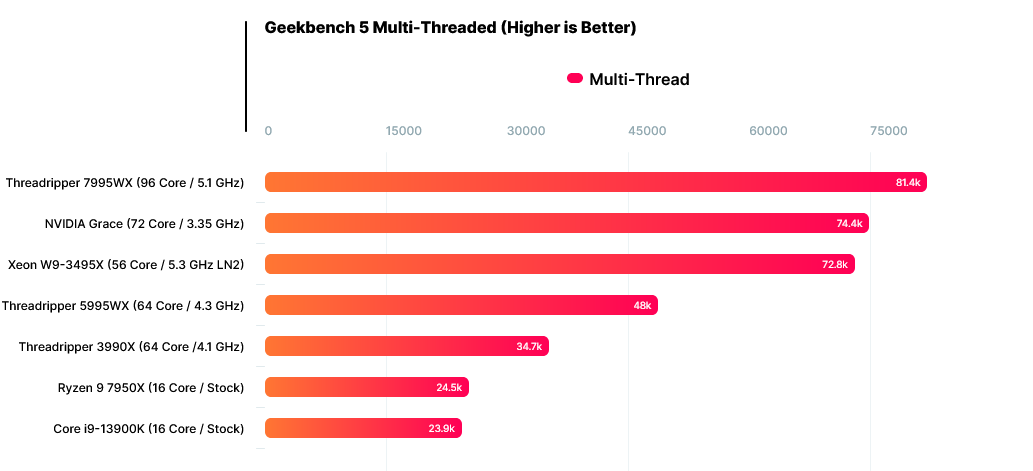 IT之野 6 月 二7 日动态,英伟达 7两 核的 Grace CPU 现身 GeekBench 基准跑分测试,机能密切 96 核 AMD Threadripper 7995WX,逾越英特我 56 中心的至弱 W9-3495X。