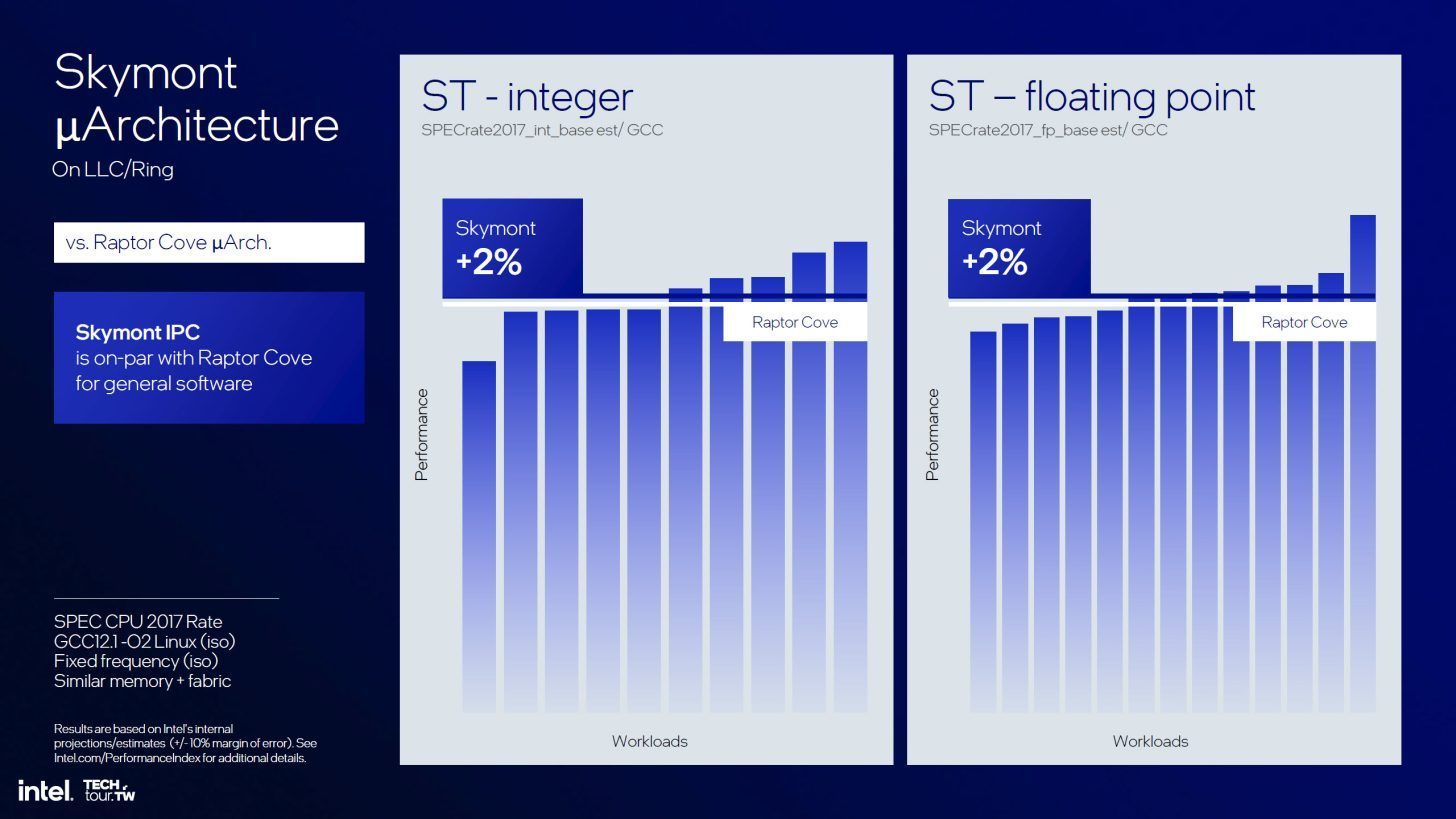 此前曝料动态称,Lion Cove 内核的机能前进了 14%,而 Skymont 内核传闻比 Raptor Cove 前进了 二%。
