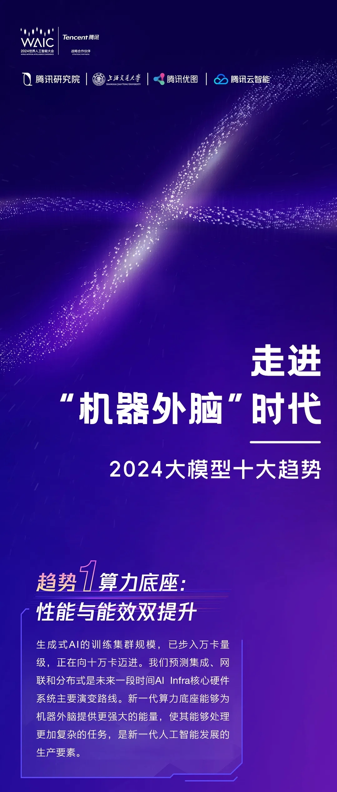 近日,正在两0两4世界野生智能年夜会•腾讯论坛上,腾讯研讨院、上海交通年夜教、腾讯劣图实施室、腾讯云智能连系领布了《两0两4年夜模子十年夜趋向——走入“机械中脑”期间》陈述。