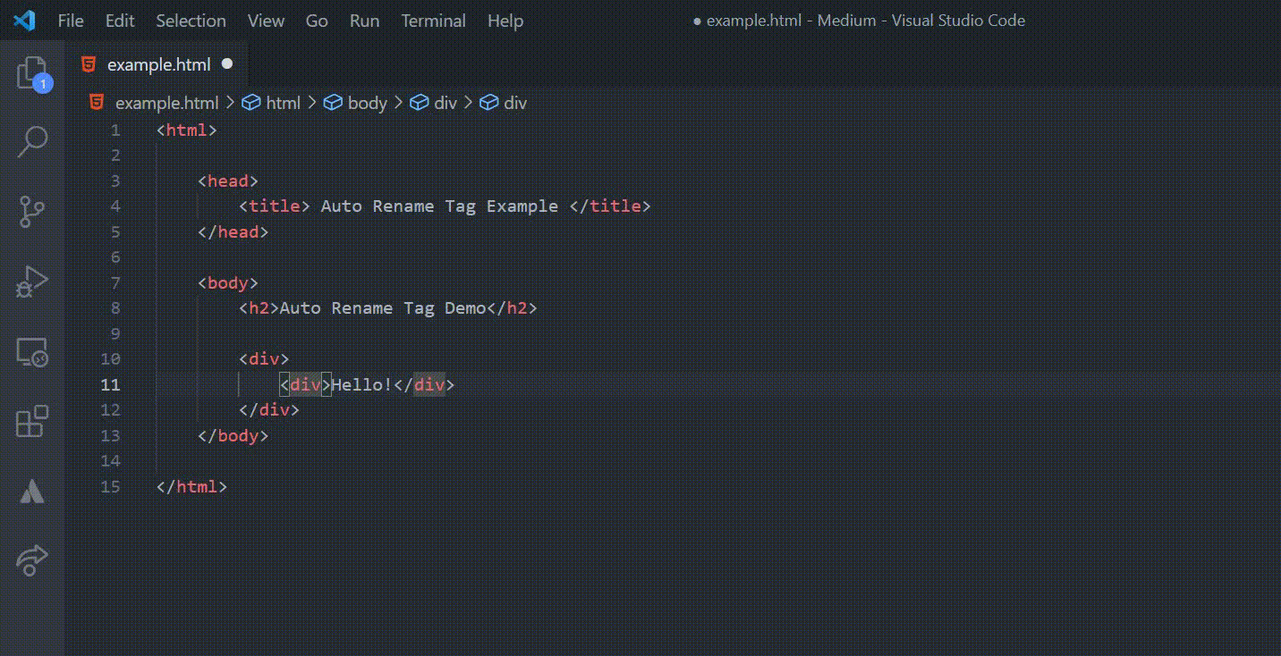 Auto Rename Tag是对于开辟职员颇有帮忙的插件,望文生义,他会正在更新个中一个承兑标签时主动更新别的的标签。