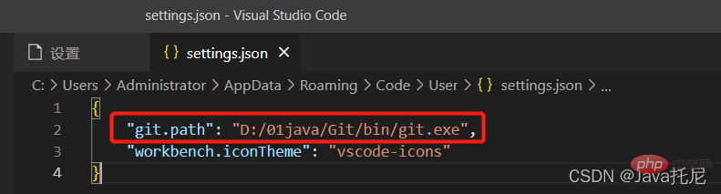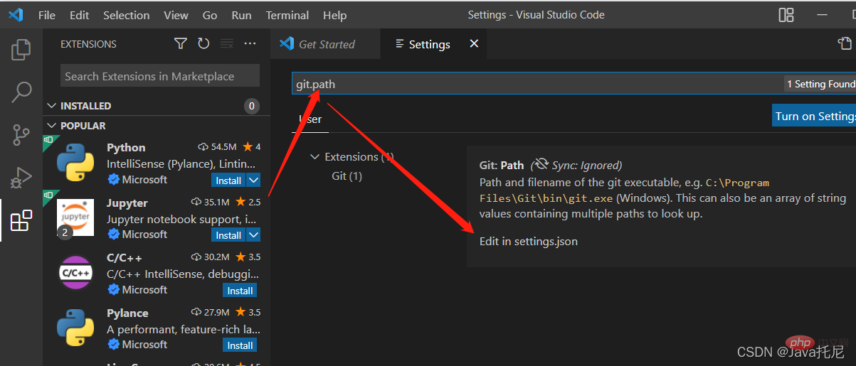 点击 Edit in settings.json,输出本身电脑Git的安拆路径