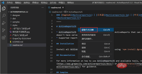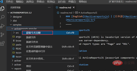 运转后,别离正在编撰器以及资源管束器里板左键否以望到那条号令: