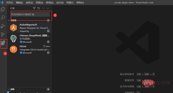掀开VScode后,界里左侧是利用市场的进口, 正在那面否以搜刮咱们必要的插件。