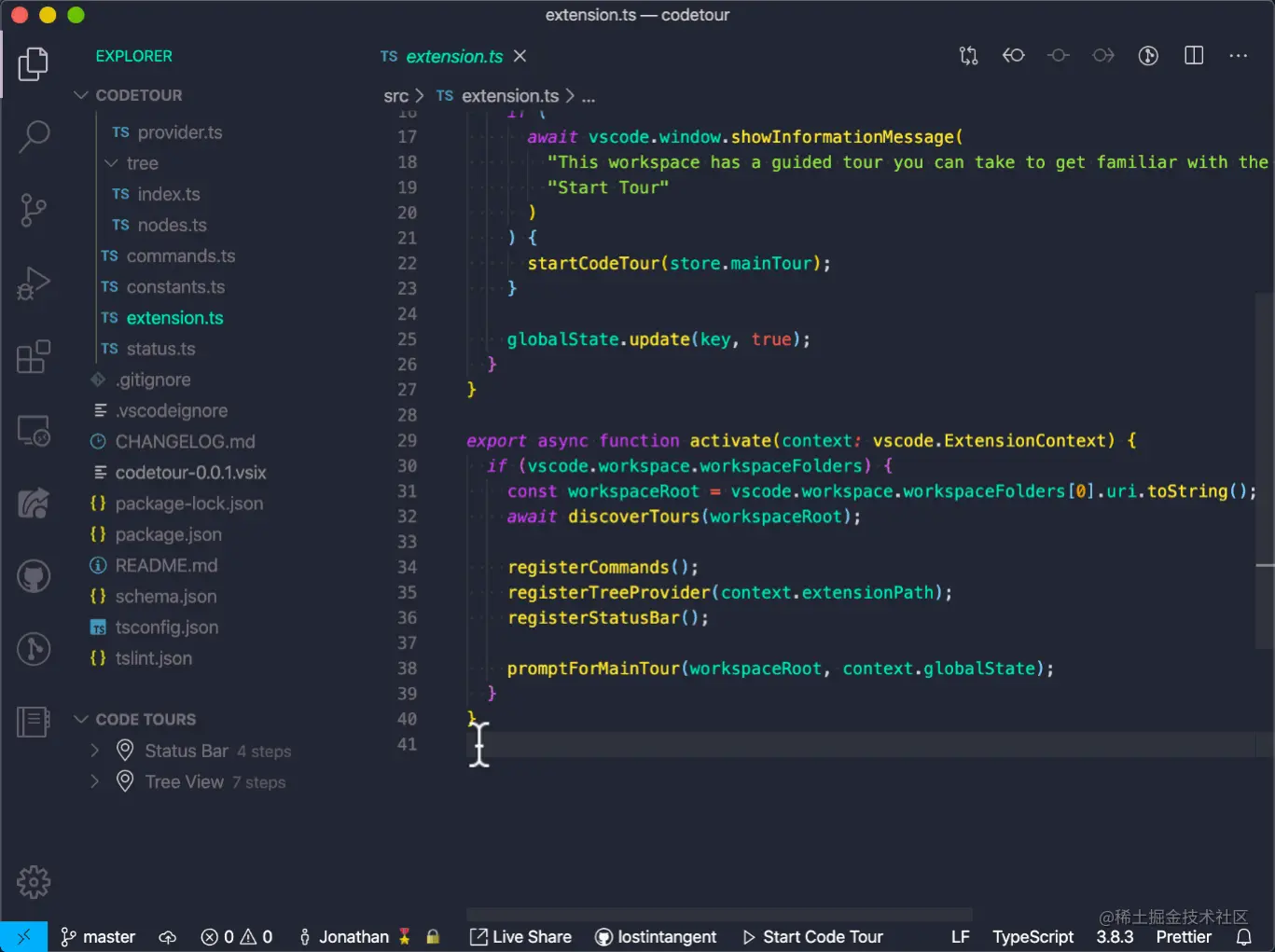 CodeTour 是一个 VS Code 插件,容许纪录以及归搁代码库的练习训练以及思绪。咱们凡是皆是经由过程代码诠释或者者文档来诠释某段代码或者办法的罪能及逻辑,如许的办法绝对简洁,然则对于阅读的人来讲借不足友谊,CodeTour 容许咱们为代码加添备注,而且将那些备注勾搭起来,消息天展现咱们的思绪和代码逻辑。