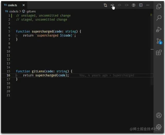 GitLens - Git supercharged : GitLens 加强了VS Code 外的 Git,并解锁了每一个存储库外已开辟的常识。 它否以协助你经由过程 Git 对于比诠释以及 CodeLens曲不雅天否视化代码做者身份,无缝导航以及试探Git 存储库,经由过程丰硕的否视化以及富强的比力号令得到有价格的睹解等等。