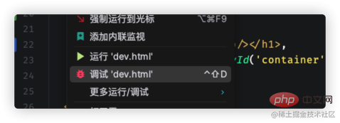 webstrom的十分简略,正在dev.html左键入止调试dev.html便可: