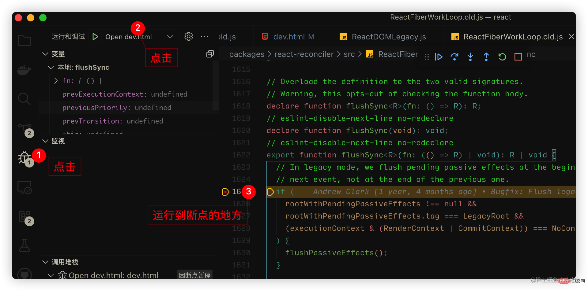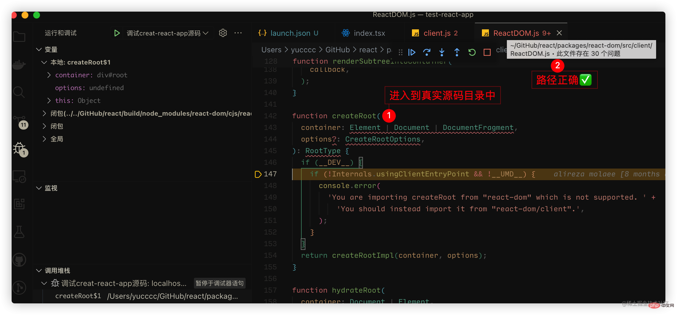 注重:此时咱们曾经有了sourcemap,间接正在/packages/react-dom或者者/packages/react会运转到代码挨上断点