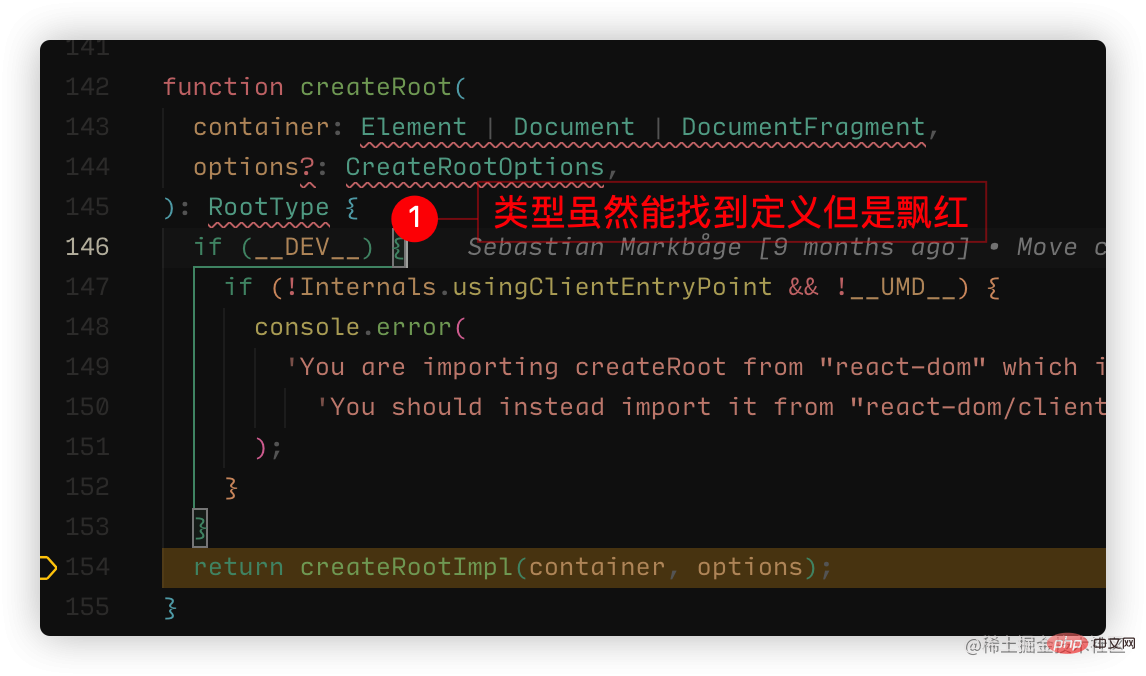 一、当前咱们跨名目入止调试(源码正在react名目外,咱们的名目正在其它一个文件外),招致范例料理显现答题, 那是基于开辟名目的界说打点,差异编撰器表示差异.