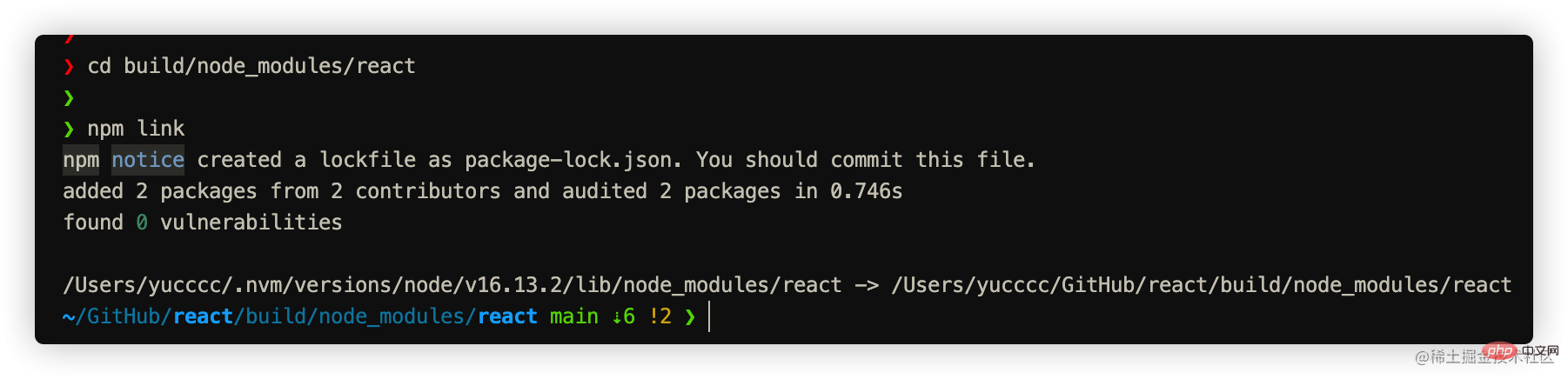 cd build/node_modules/react && npm link如高便顺遂了一个: