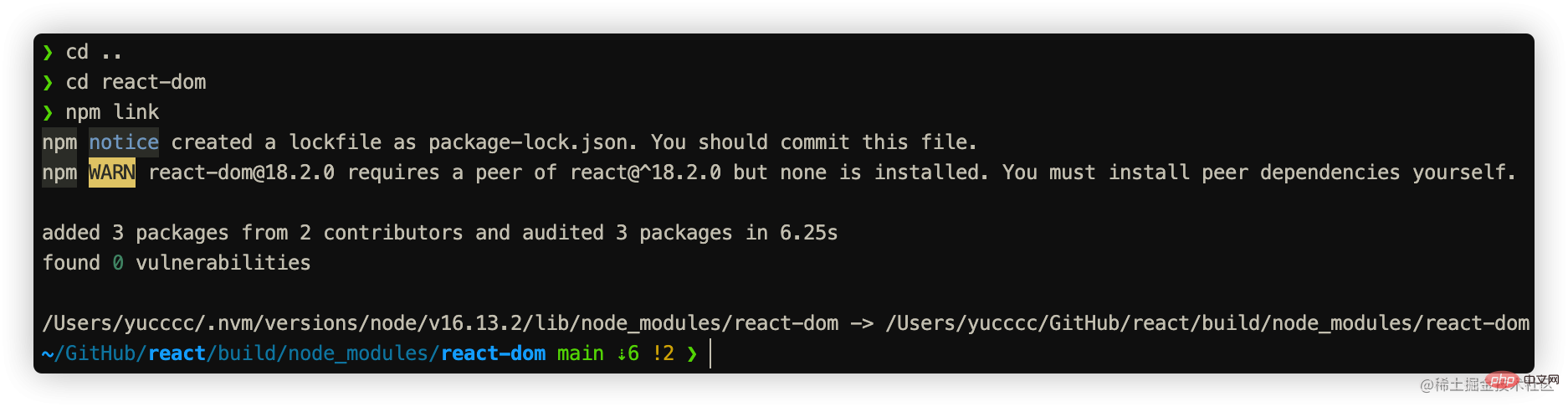 ②: 正在React名目外将 react,react-dom链接到齐局.