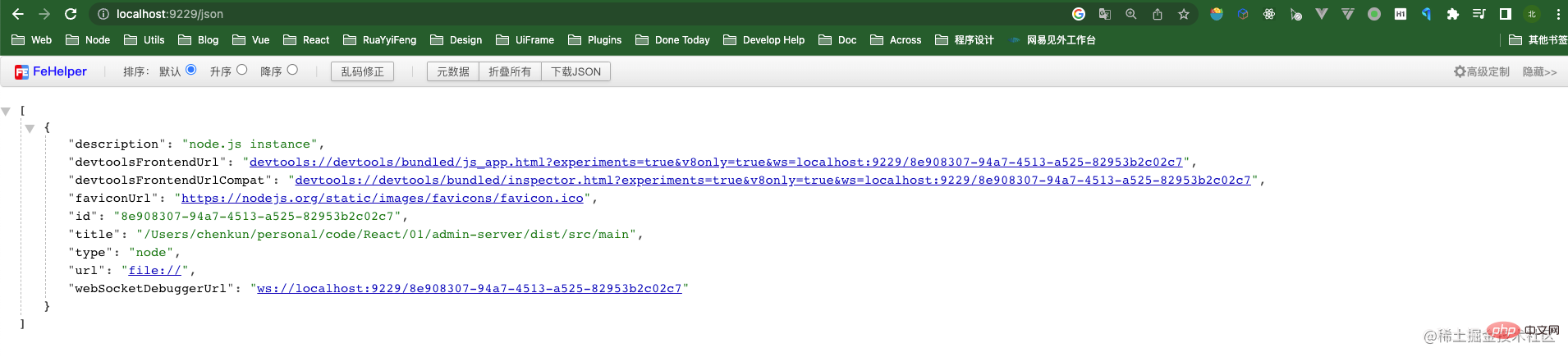 那个时辰经由过程, 末端会呈现上面那止,接着造访http://localhost:9二二9/json, 就能够望到VSCode运转的每一个调试用的wb(wbsocket), VScode调试本性上便是经由过程单端通讯的体式格局入止调试