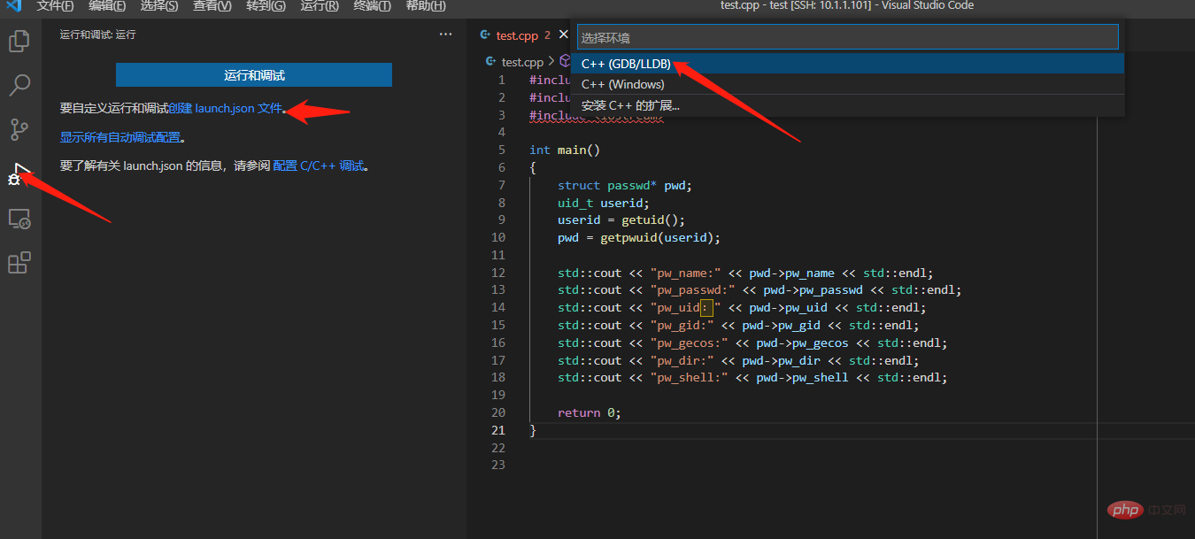 选择 C++(GDB/LLDB)项,自觉天生 launch.json 文件,形式如高